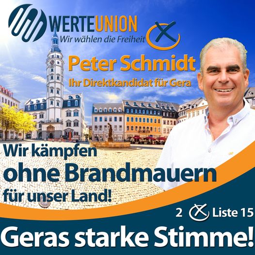 Hallo, ich bin Peter Schmidt, Ihr entschlossener Kämpfer für Gera und Ihr Direktkandidat der WerteUnion zur kommenden Landtagswahl.
